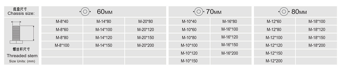 Suitable for table feet, horizontal knuckle feet, production line, adjustment and movement of production equipment, etc.
