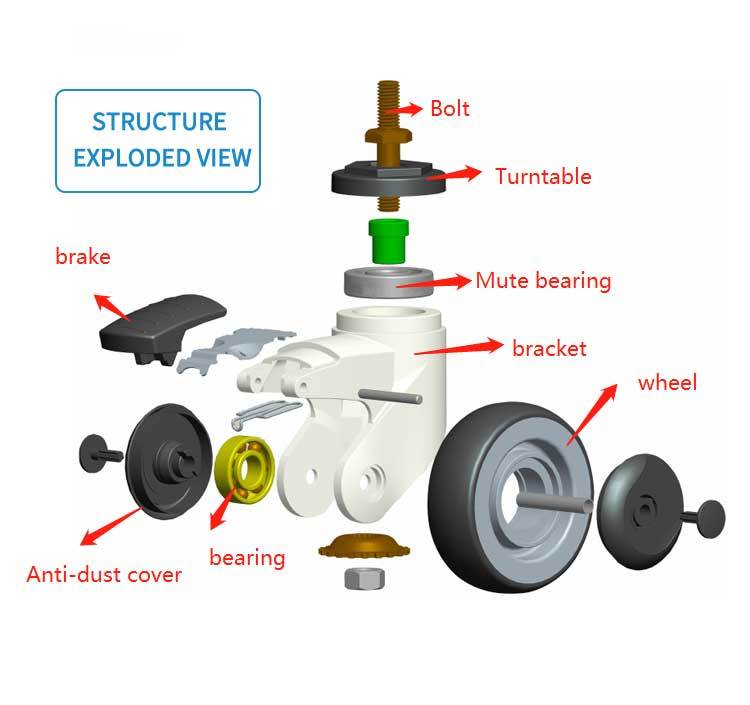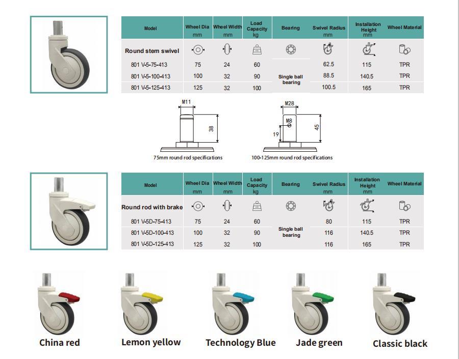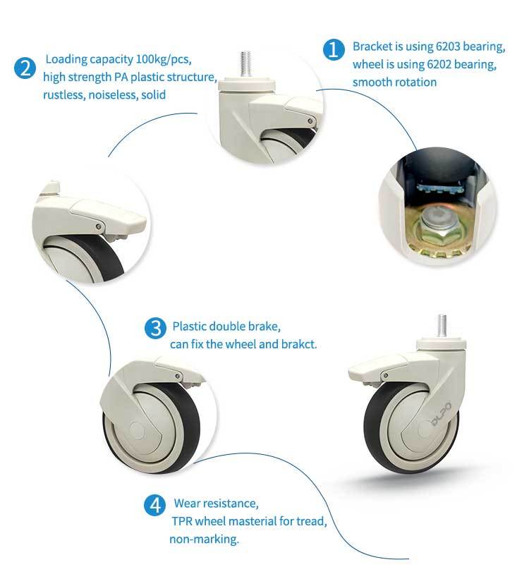 medical caster, hospital bed caster, trolley caster, Stretcher caster single wheel, TPR caster wheel